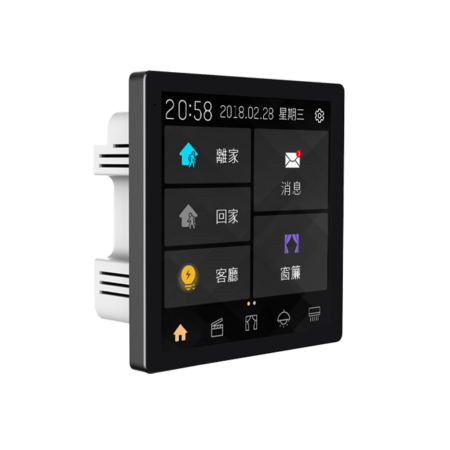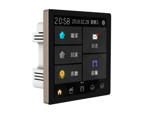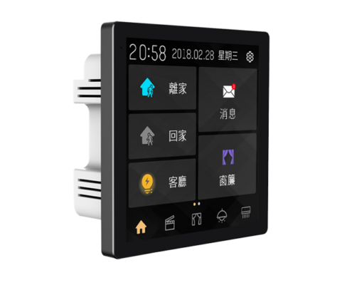 4吋智能終端是一款高清液晶觸控終端,能夠代替燈控、窗簾觸控面板及空調面板,從而實現集中控制,同時支援情境模式控制,能夠讓使用者得到更佳的智慧體驗。